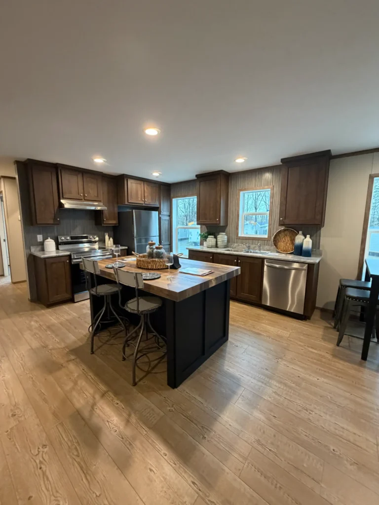 Eagle River 60J1262 28×56 Available for customer order! 3 Bedrooms, 2 Baths More info coming soon! Hickory FP Cabinets Full Backsplash Kitchen Drywall –LR Large