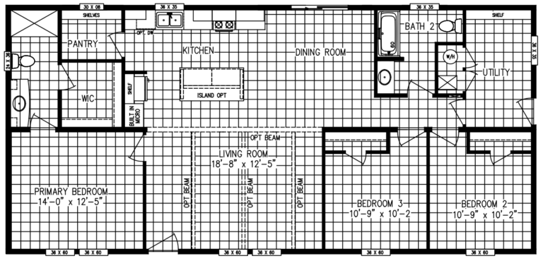 Clayton Expedition 28 x 60 Available for customer order! 4 Bedrooms, 2 Baths OSB Wrap with House Wrap 8’ Sidewalls with Flat Interior Ceilings Rip-Preventing